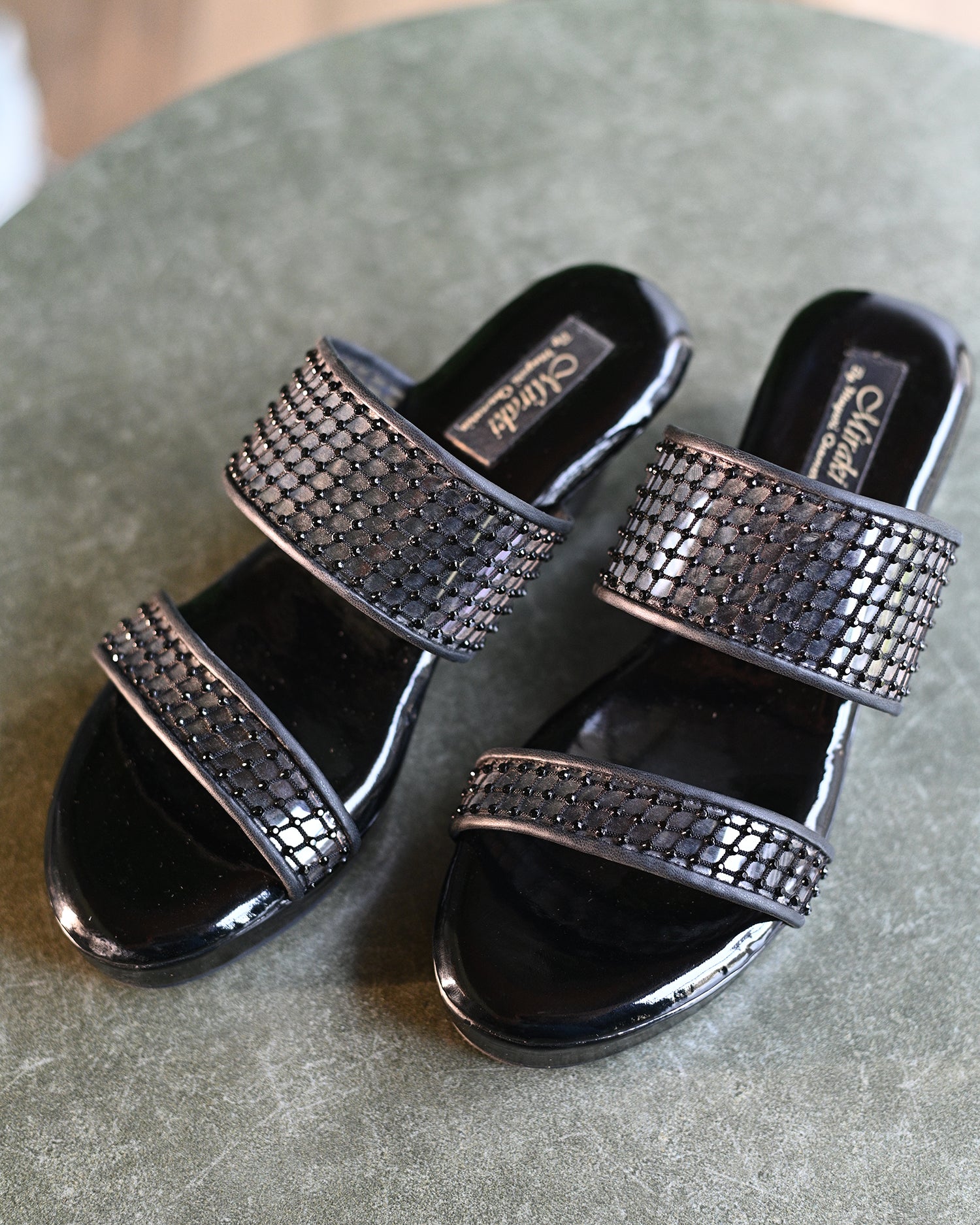 Featuring a stylish pair of see through black strap wedges which have been beautifully highlighted with crystal detailing.