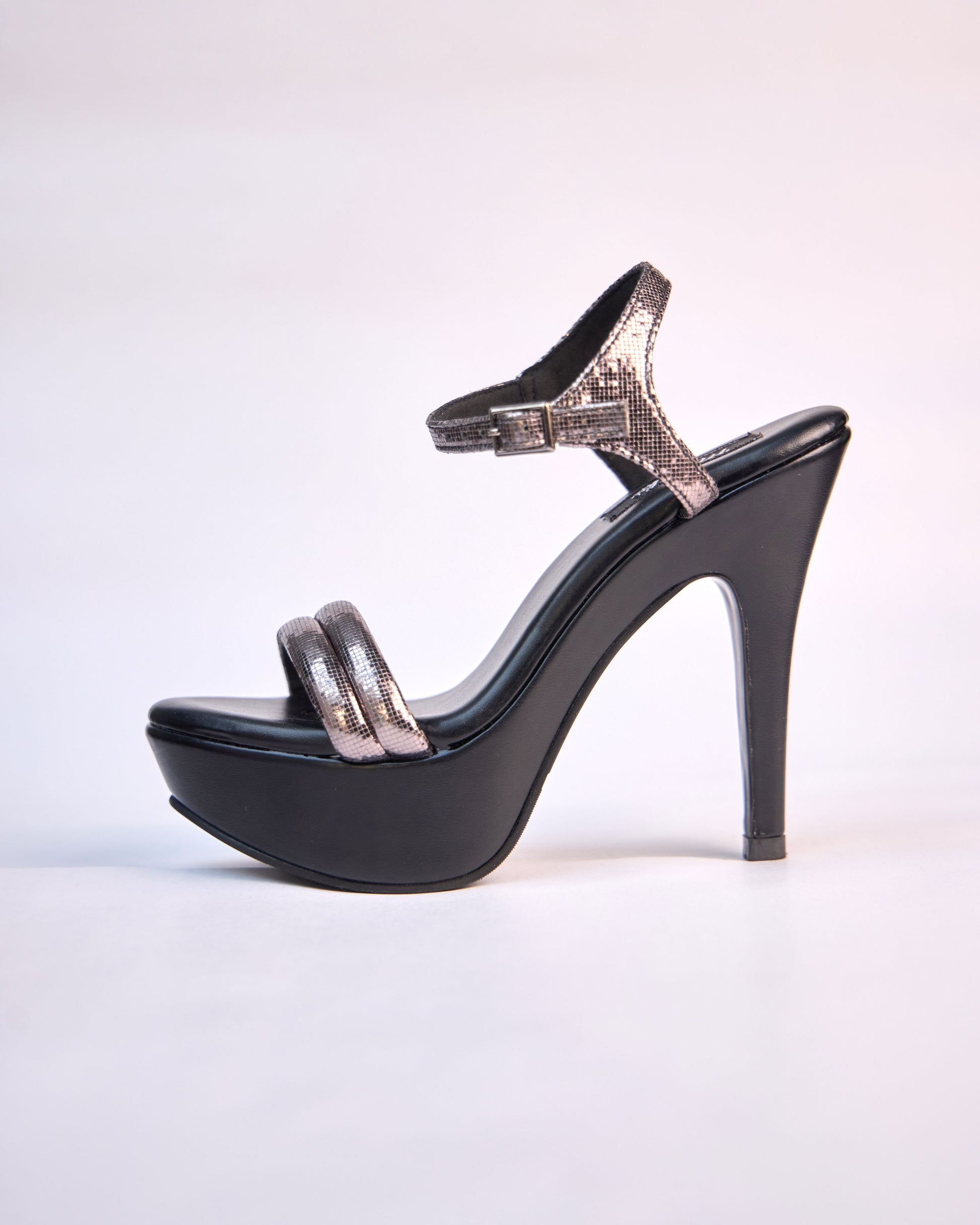 High-impact silver platform heels with pleated detailing and a dramatic flared block heel. Crafted for height and comfort, this statement pair is made for celebrations, cocktails, and standout evenings.