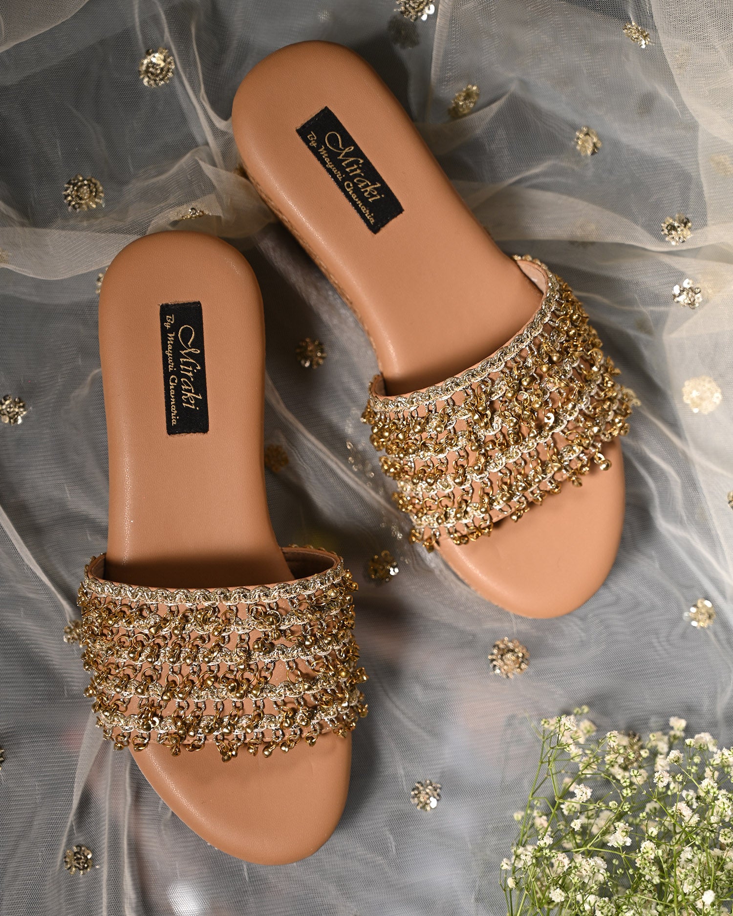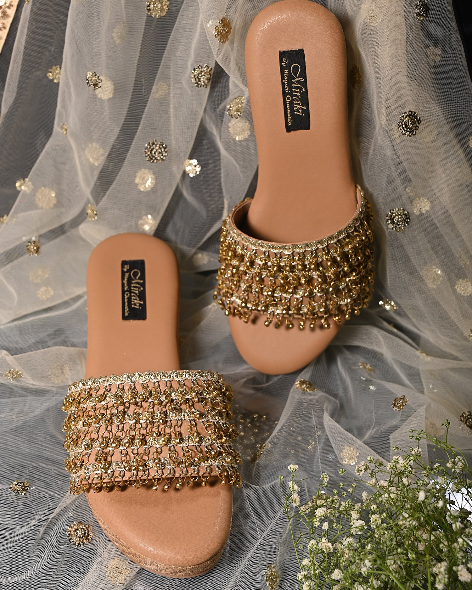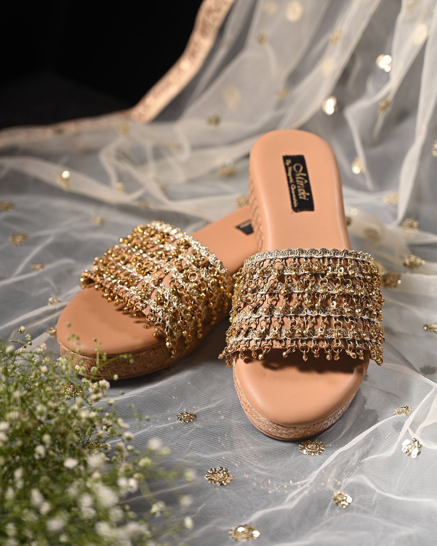 Featuring a unique pair of slip-ons in platforms with gold ghungroos to go perfectly with your traditional outfits.
