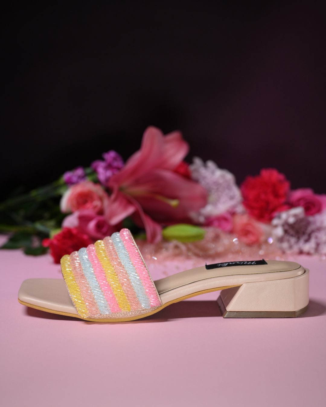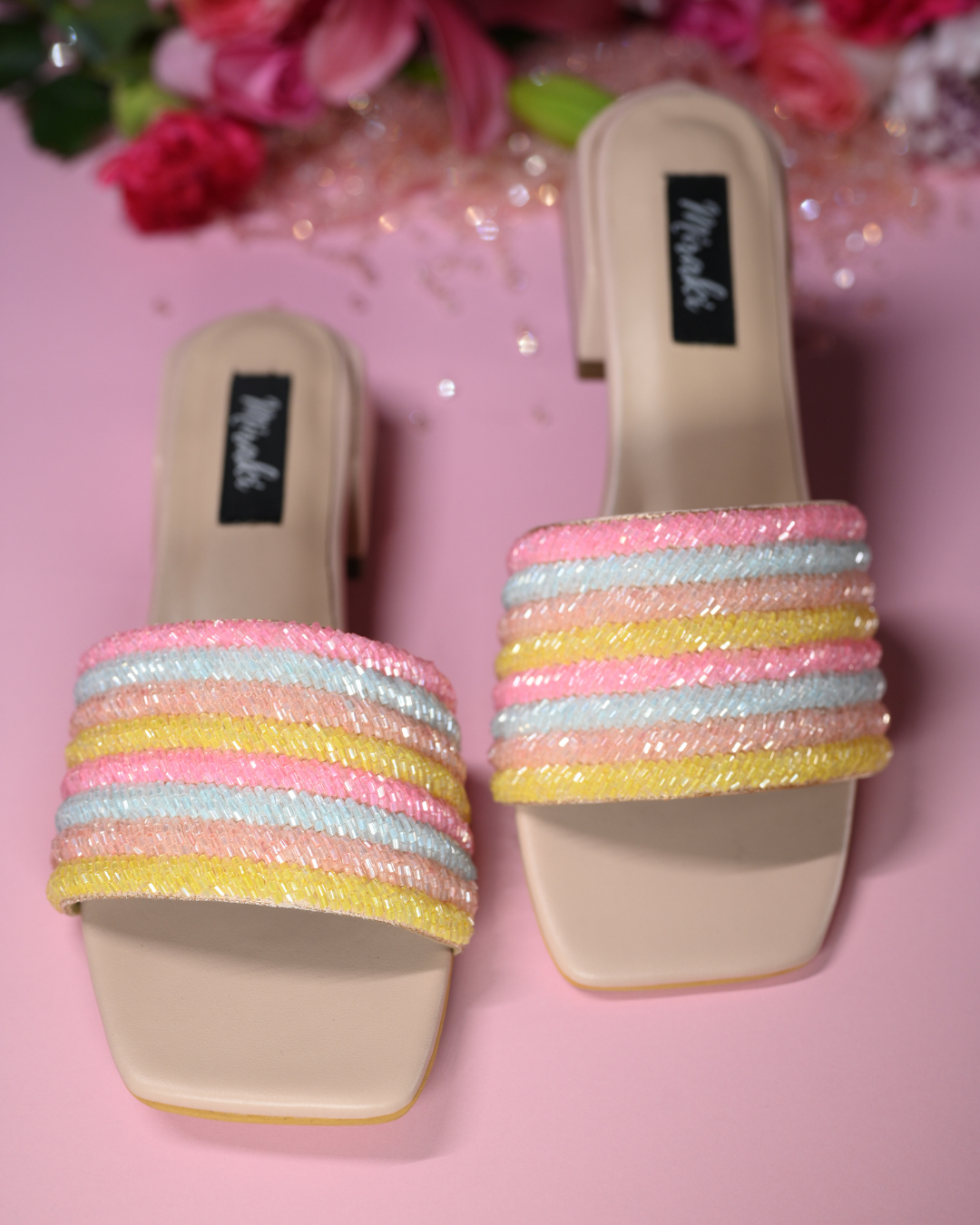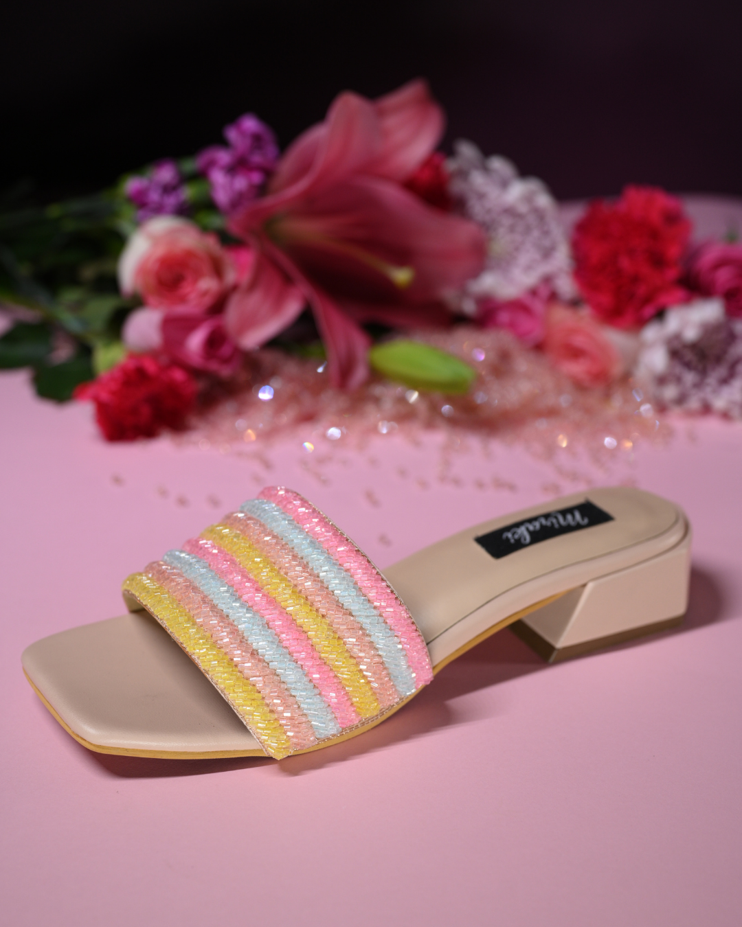 Step into a world of vibrant elegance with our slip-ons adorned in intricate beadwork of multiple colours. Each pair is meticulously crafted by hand, designed to captivate attention and exude charm and elevate your style effortlessly.