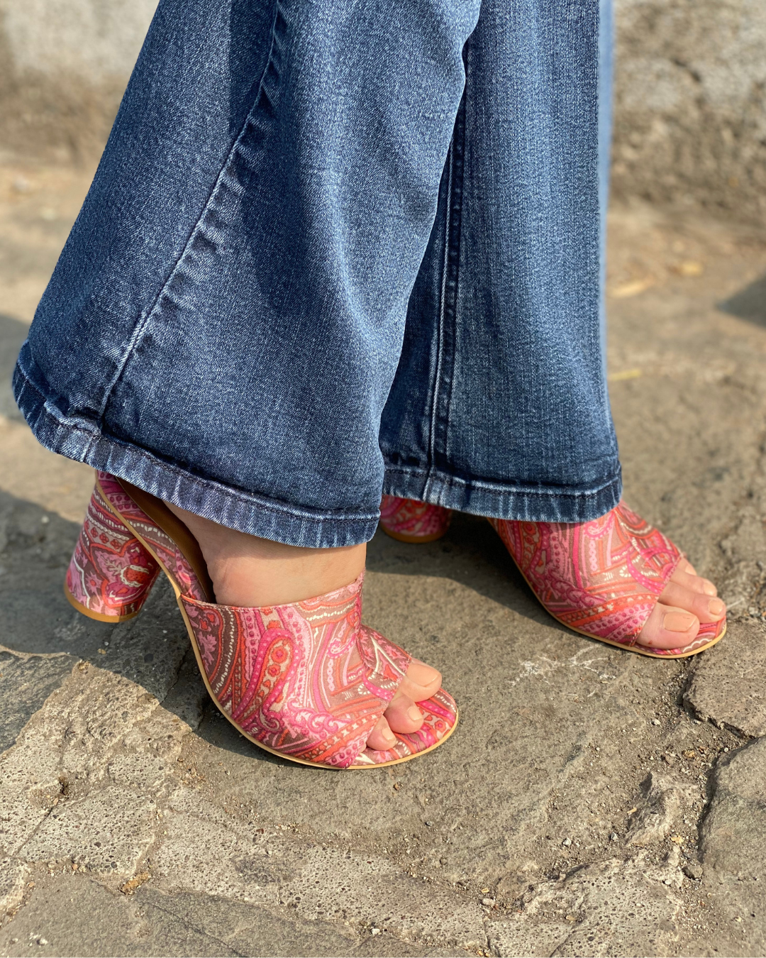 Featuring a beautiful pair of printed mules with these unique round block heels which makes them stylish yet easy to wear for long hours. These are perfect for making a statement.