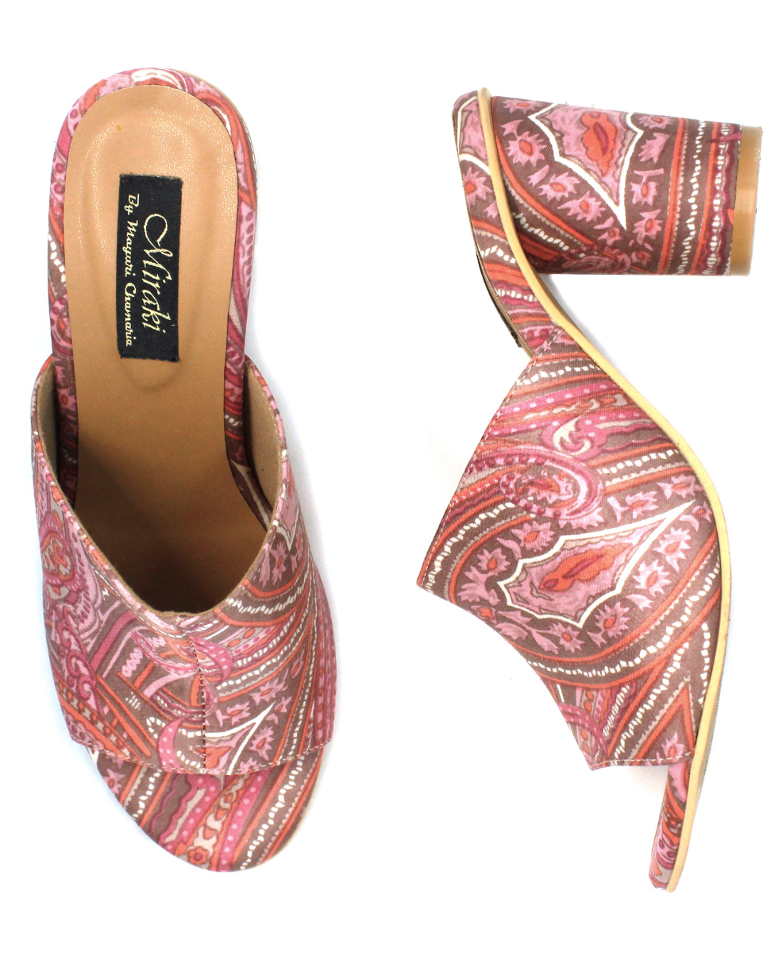 Pink Paisley Printed Slip Ons With Rounded Heels