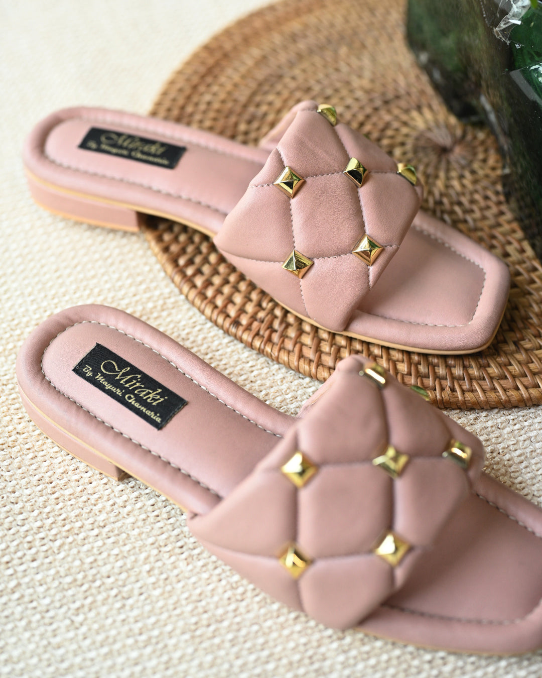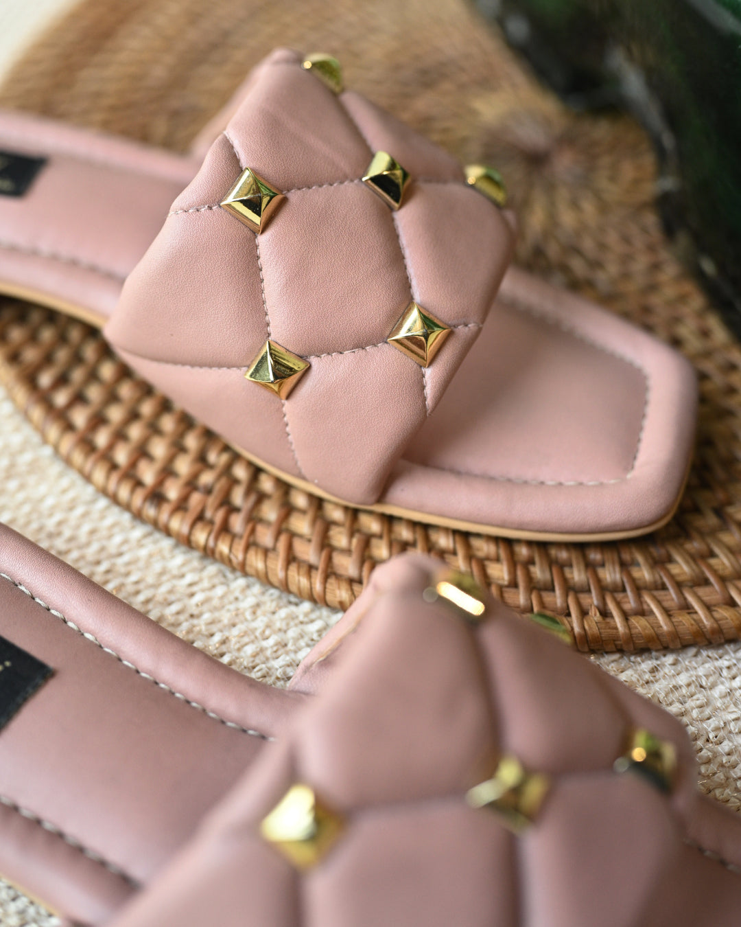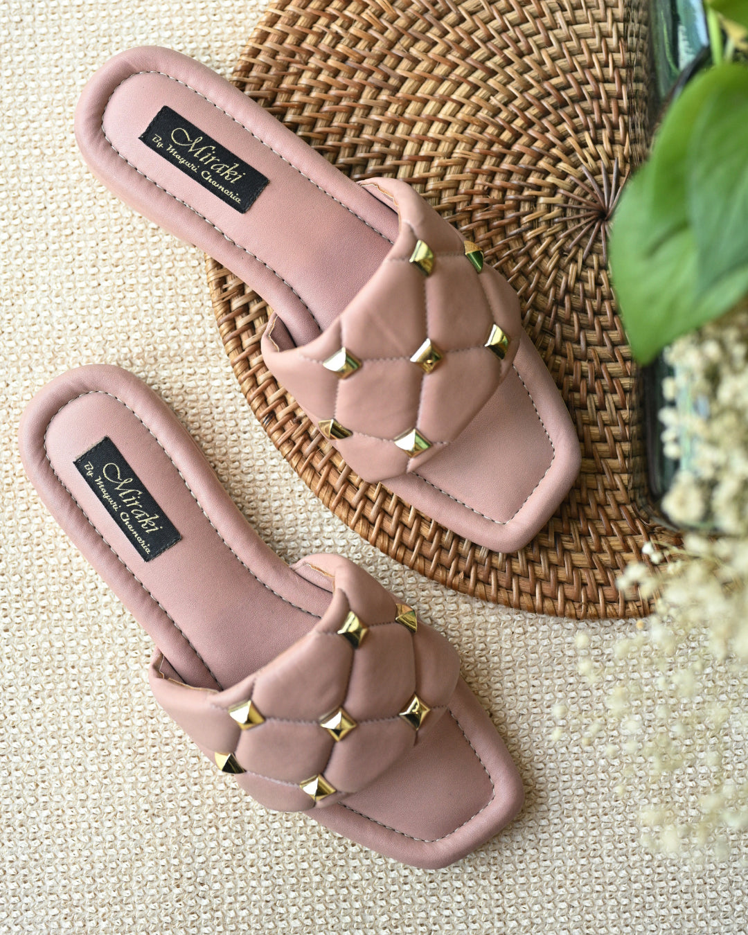 Featuring a pair of stunning slip-ons flats embellished with studs, perfect to style with any kind of look. Extra soft padding has been provided for comfort.