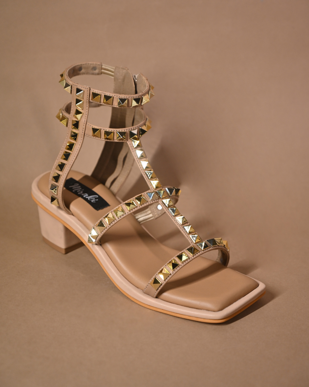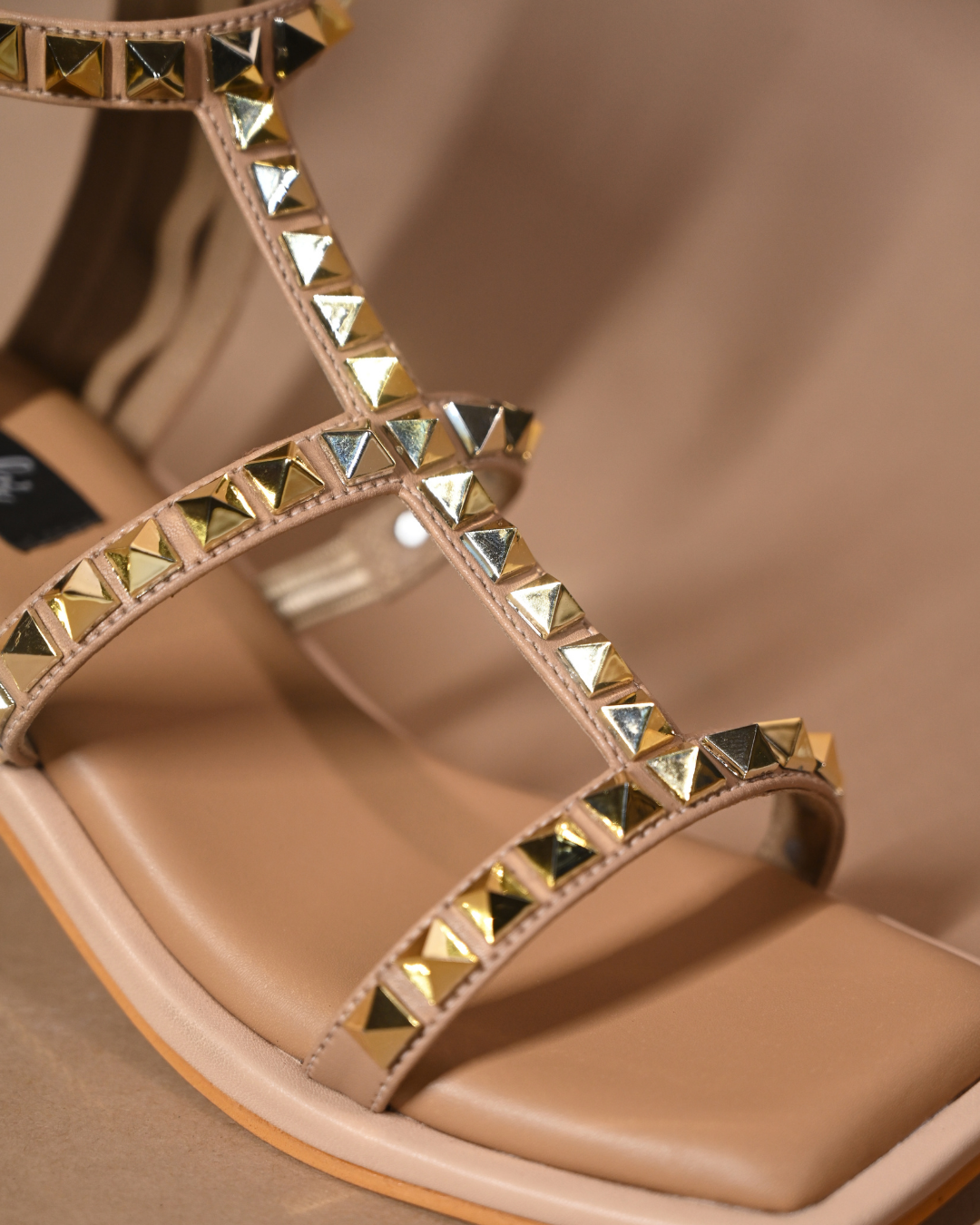 Introducing our take on the little beige heel which is adorned with golden studs, where luxury meets style. Crafted to elevate your look and make you stand out, these heels exude sophistication and timeless fashion.
